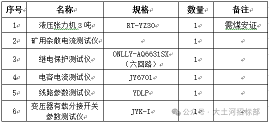 大土河招标公司,对大土河供电公司“电力检测仪器”采购组织国内公开招标。欢迎有相应资格的投标人参加招标,现将相关事宜公告如下:一、项目概况: 1、项目名称:大土河供电公司“电力检测仪器”采购 2、项目编号:DTH-H 3、招标方式:公开招标 4、交货地点:大土河工业园区 5、资金来源:企业自筹 二、招标范围及要求: 采购清单 ![]()